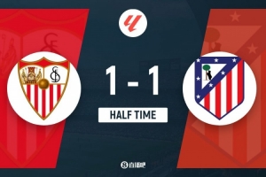 半场-马竞暂1-1塞维利亚 加拉格尔造点阿尔瓦雷斯点射